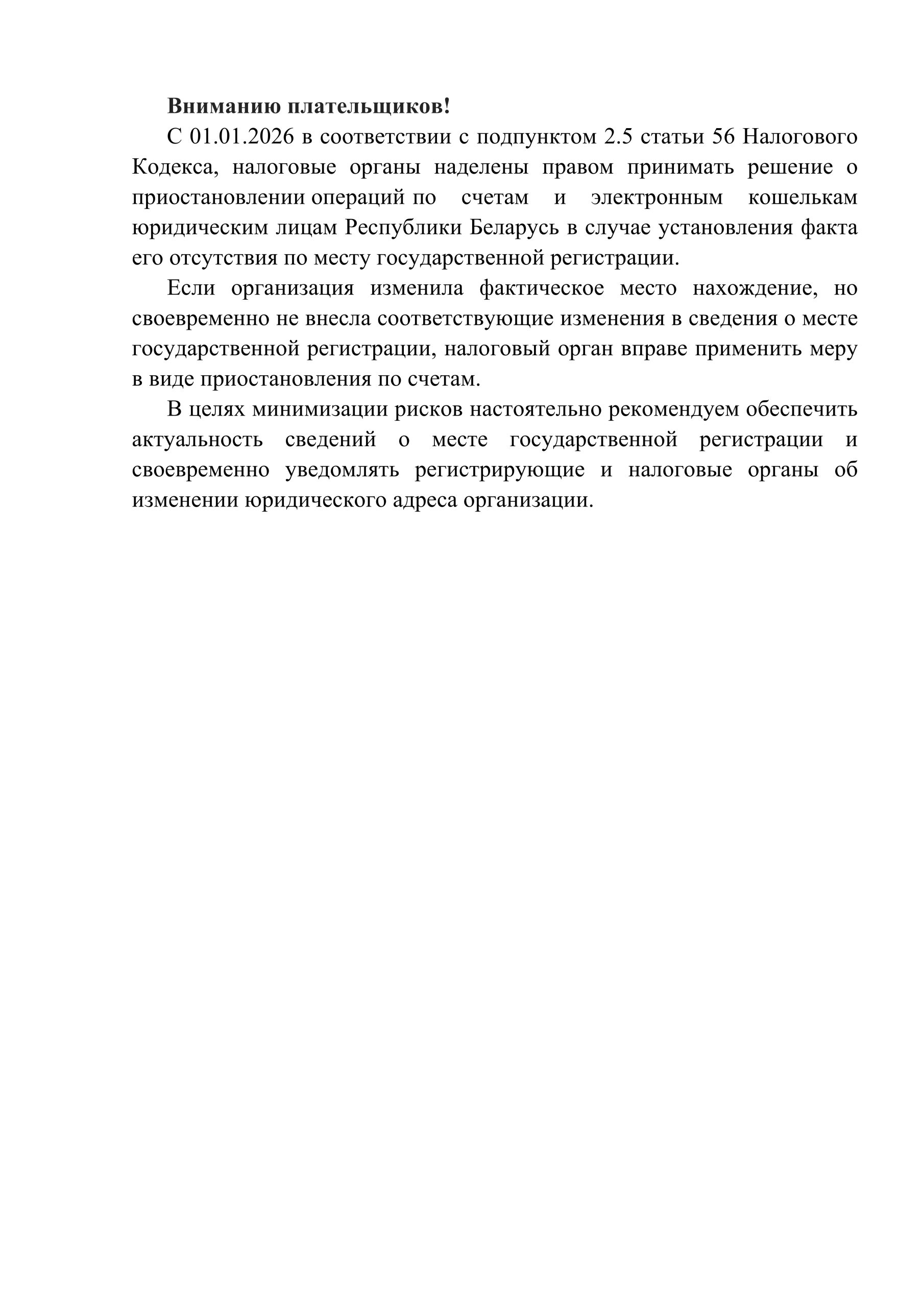 Вниманию плательщиков!